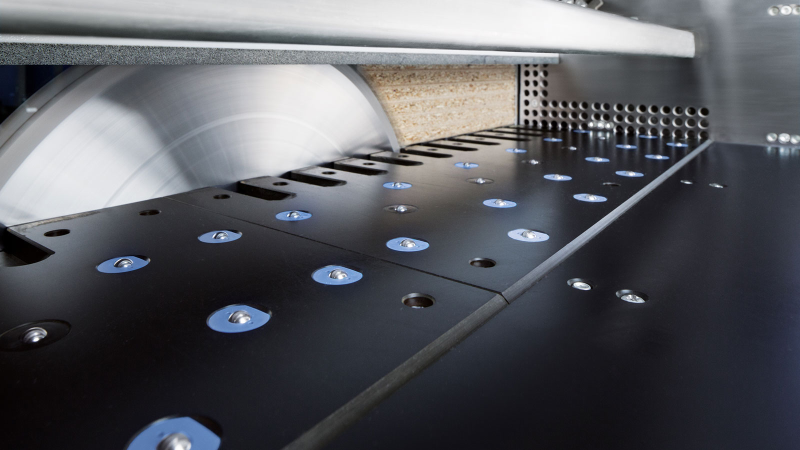 - Central side pressure device: integrated directly in the saw carriage, which shortens cycle times