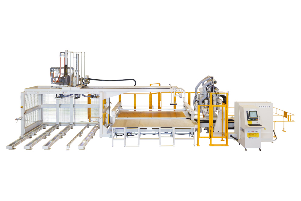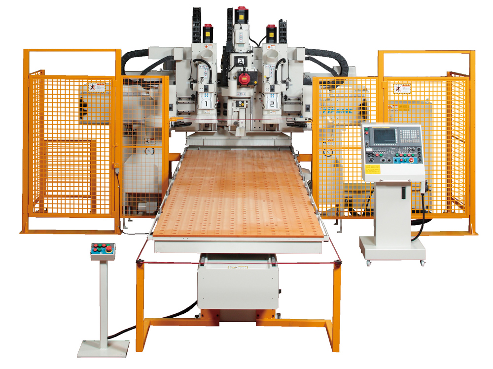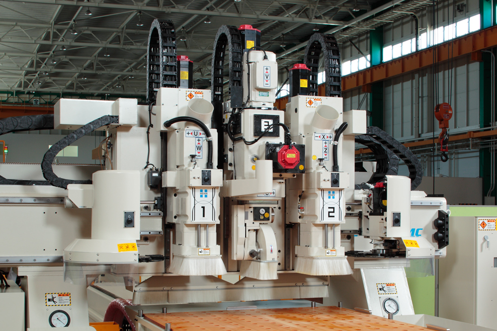 Trim matrix moving table with router spindle and C-axis with drilling unit.