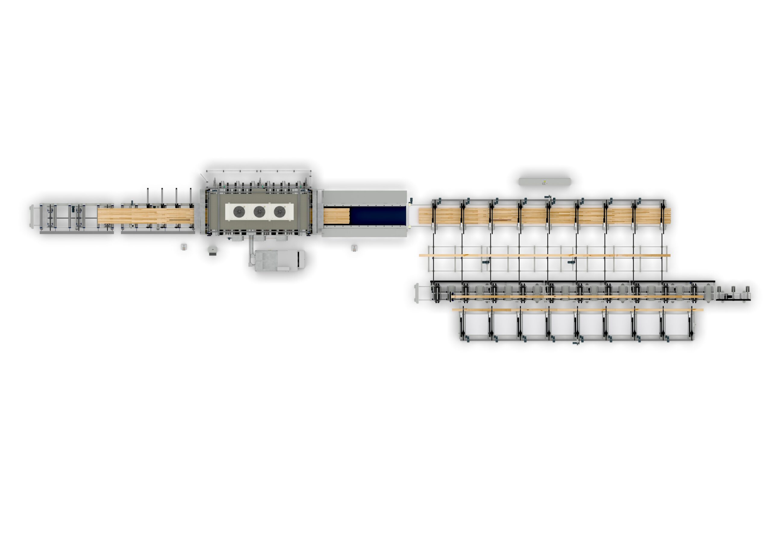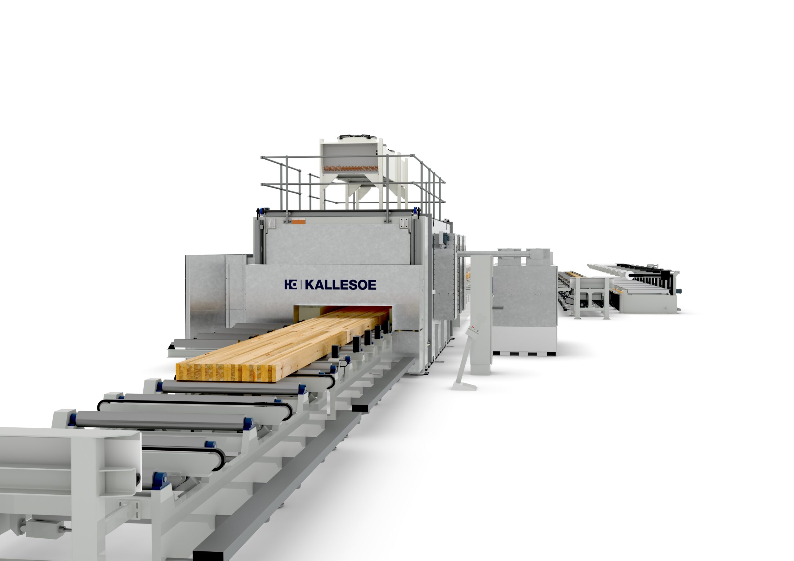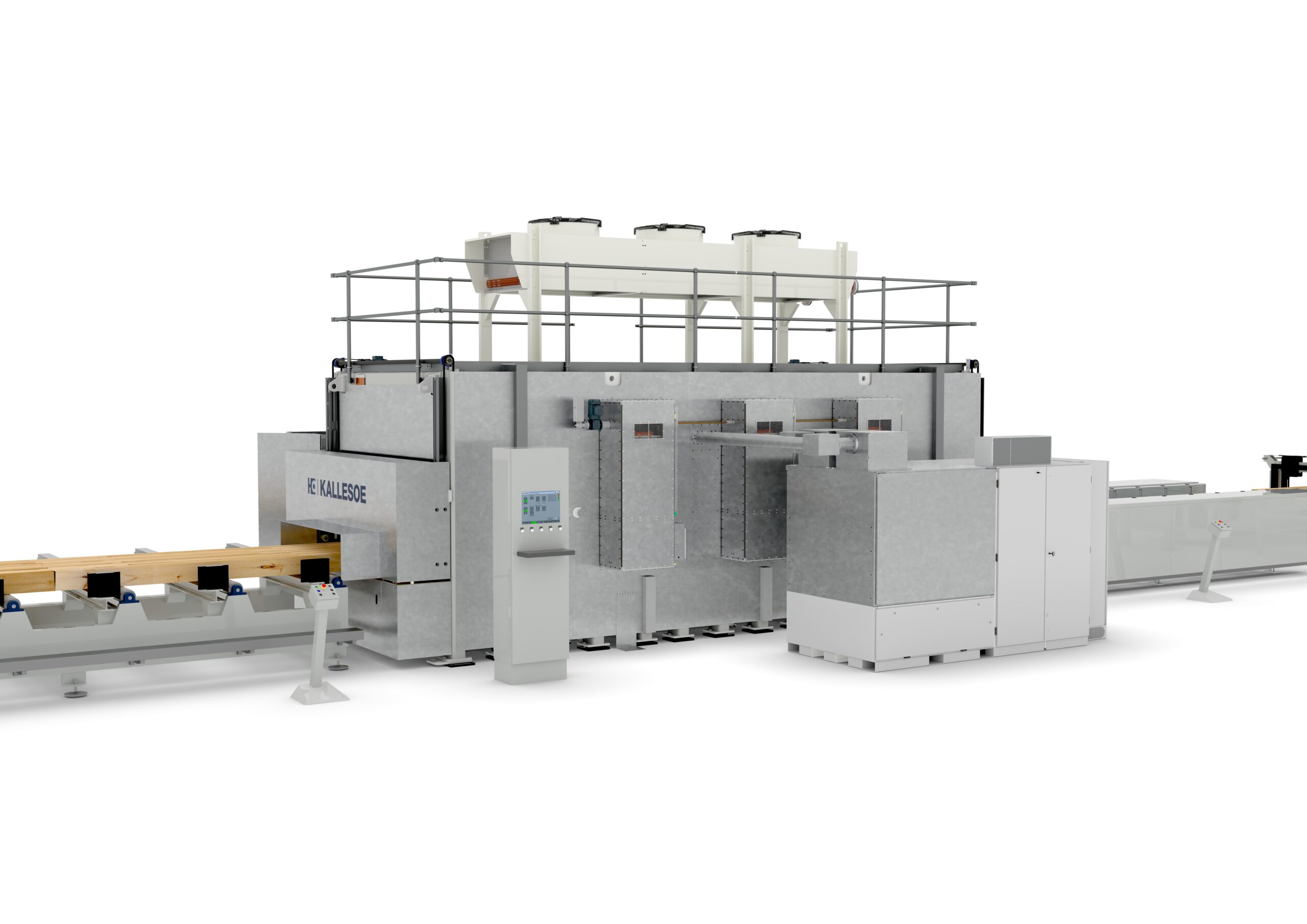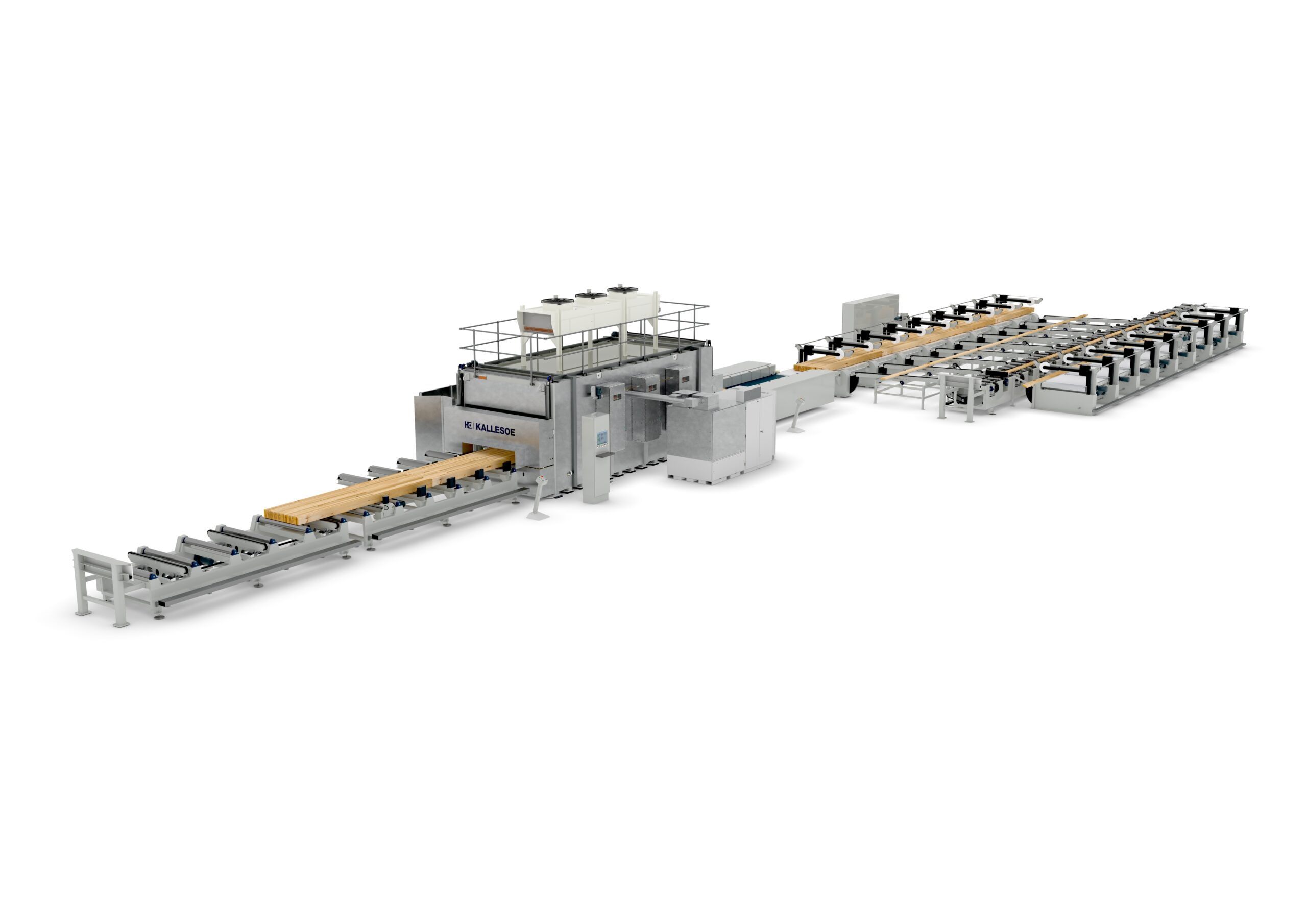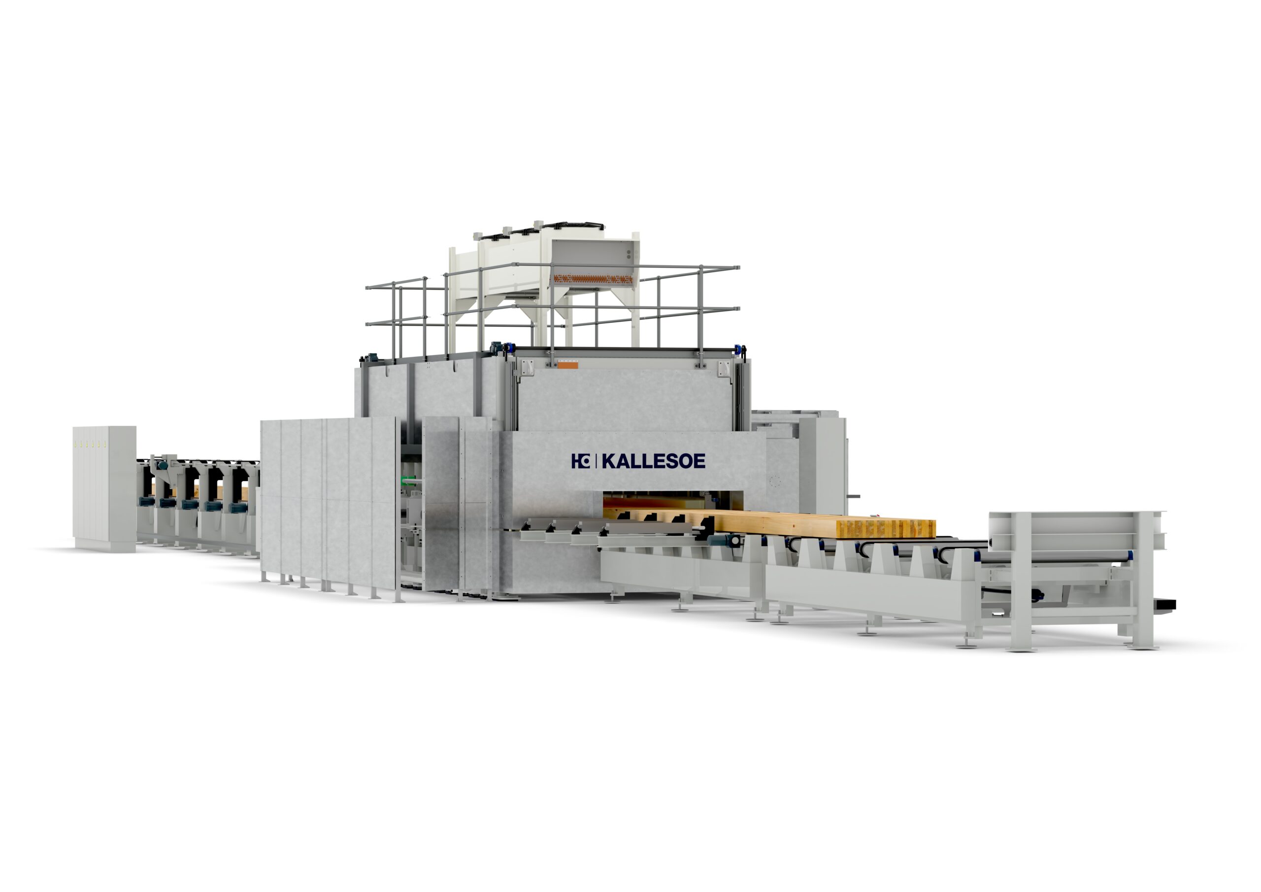 Kallesoe’s radio frequency press for GLT/glulam beam production is renowned for its efficiency, featuring remarkably short pressing times and high output. This production line boasts the most effective and reliable radio frequency system in the market, specifically designed for producing glulam beams of up to 27 meters. Each line is tailored to match your product specifications and production requirements, typically including a double roller conveyor, lay-up system, and a high-frequency press with infeed and outlet tables. The Vario press, a flexible version of the LHF press, is optimized for order-based production.