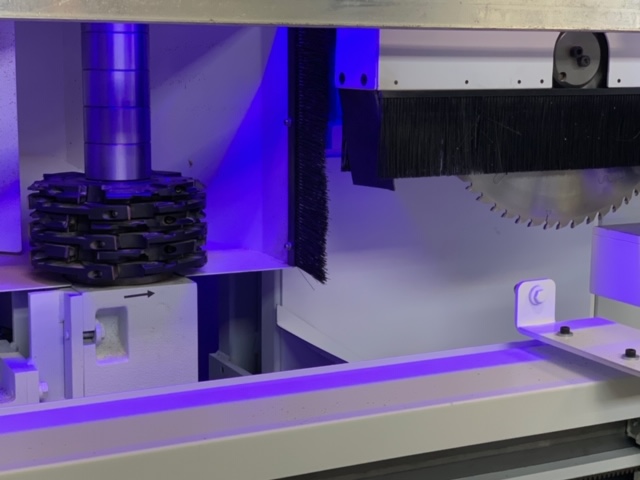This work cell makes it easy for a single operator to produce cabinet door rails and stiles simultaneously for peak production and efficiency. Pieces are accurately sized, squared, and machined in less than a minute without manual setup between different profiles.