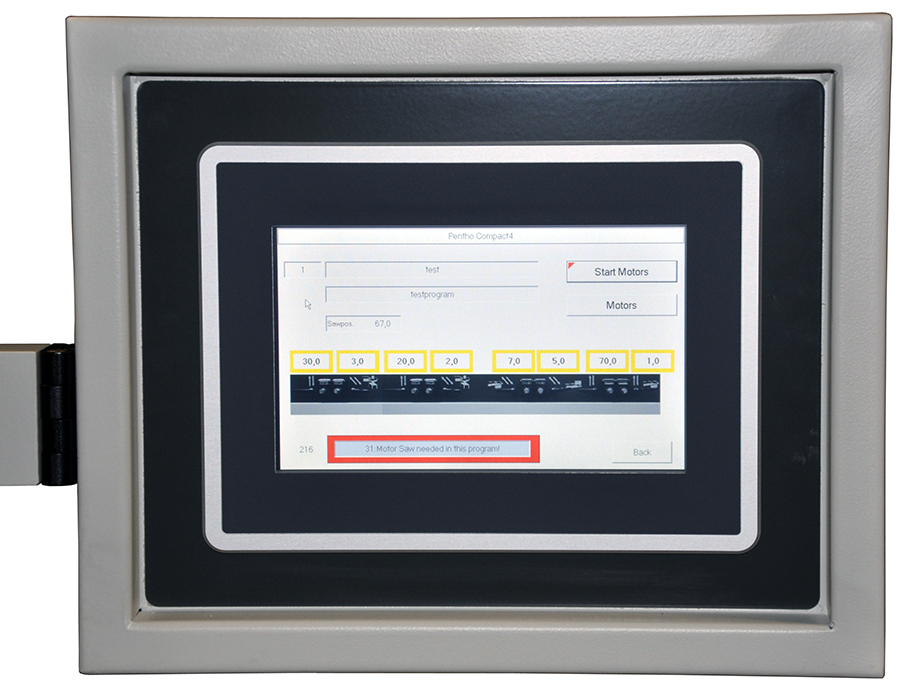 Vertongen Pentho Compact Machines come standard with intelligence, capable of storing programs in the touch screen for easily saving positioning data and starting up the appropriate stations. All machines include a cutoff saw, for accurately sizing and squaring your workpiece, 2 opposed horizontal tenon heads, for making tenons without special tooling required, and a choice of 1 or 2 vertical spindles for making slots, or achieving the desired profile. A precision machined steel table with backing wood secures the workpiece during machining. Options such as the Performance pack, High Performance pack and motorized table, help to turn setup time into valuable production time, decreasing the setup time associated with change overs, and increasing the production time on the machine.