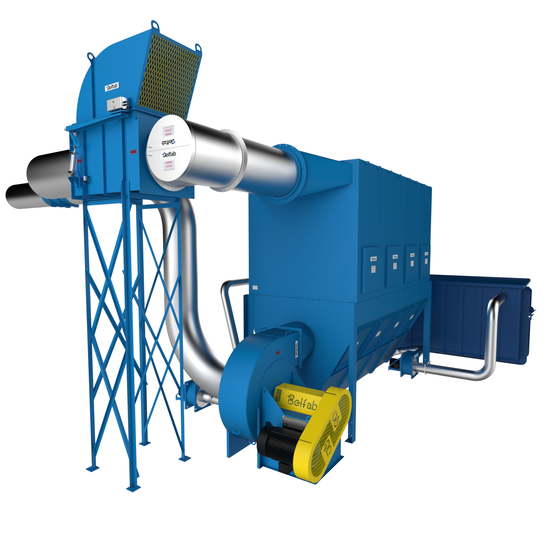 The BELFAB SBM dust collector line is engineered to efficiently handle medium to large volumes of fine to mixed dust, with capacities ranging from 5,000 to 30,000 CFM. This innovative design seamlessly integrates BELFAB’s cutting-edge modular filter technology, offering a cost-effective means of increasing filtration surface area as needed by introducing additional filter modules. Each SBM module comes equipped with deflagration vents, adhering to NFPA 68 regulations, ensuring safe and compliant operation.