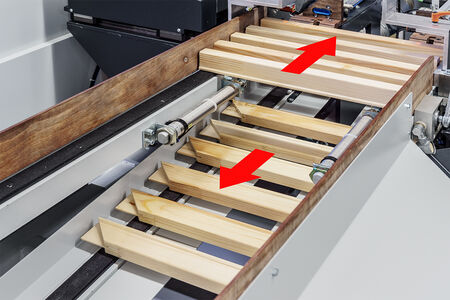 In one single working cycle the workpiece is clamped and milled on the left and right side (tongue and groove). After milling the piece is released and can be removed for inserting the next workpiece. The machine is equipped with a workpiece recognition sensor which prevents the machine from starting when no workpiece is inserted. The BRF can be easily readjusted to milling different notching depths by using easily replaceable workpiece stops.