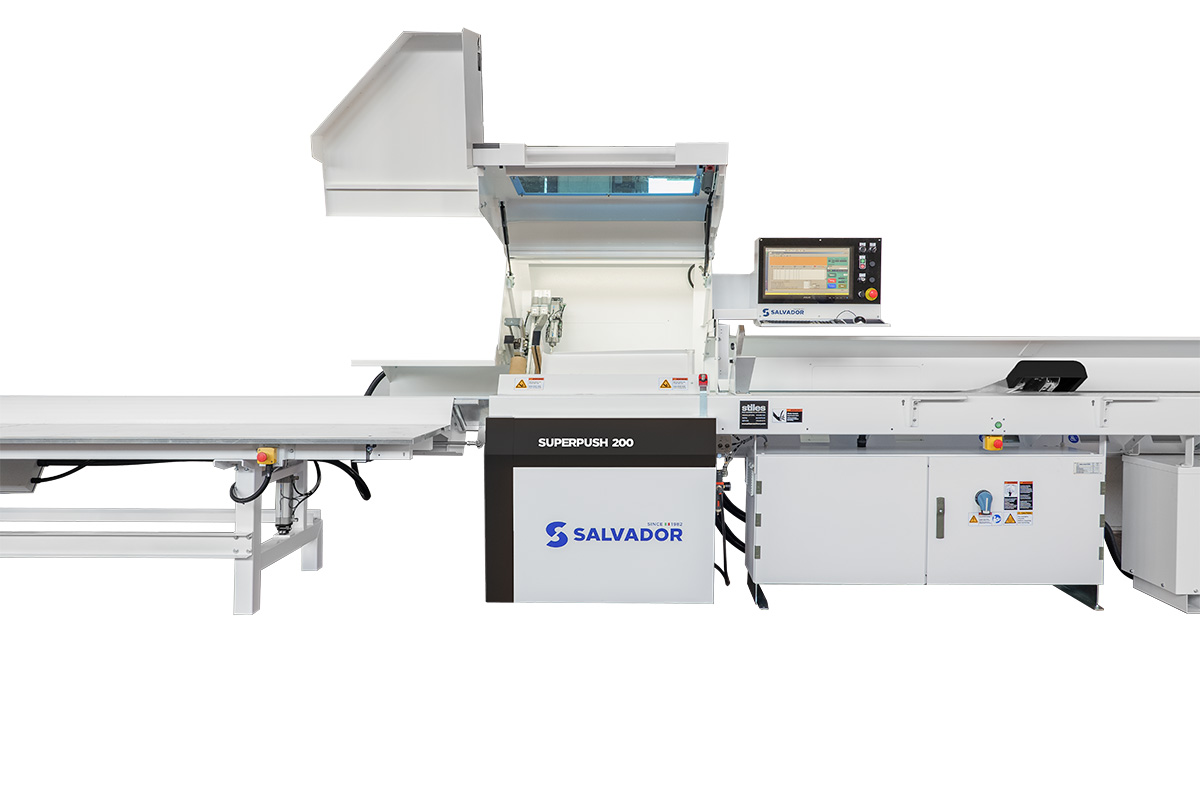 The Salvador Superpush High-Speed Optimizing Saw is the result of over 30 years of technological advancements and innovation in wood manufacturing. With standard features including a 30-degree inclined plane for increased accuracy, an automatic push feed arm with innovative lifting capabilities for seamless production, and easy-to-use industrial windows operating system, Salvador’s Superpush series ensures manufacturers of all sizes get the most out of every cut.