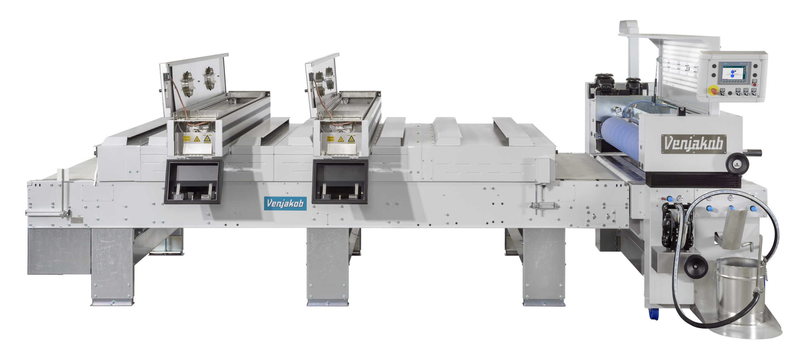 The most efficient solution to coat flat parts is the roller coating technology. Nearly 100% transfer efficiency at a high productivity and short processing times due to the use of UV cureable coatings are the benefits of this technology. Venjakob offers roller coating lines for flooring (hardwood, engineered flooring, veneered