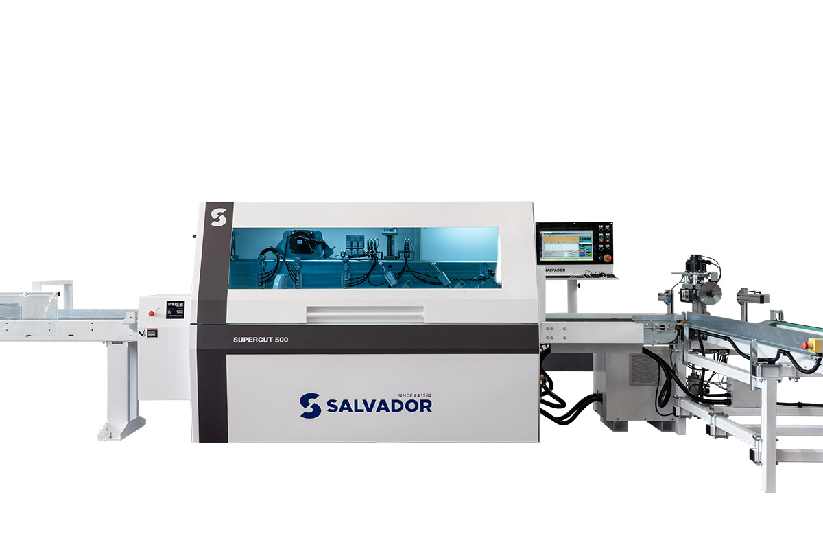 The Supercut 500 is an optimizing saw that sets new standards in high-speed operation, designed to tackle the most demanding production needs with unwavering dependability. This saw is characterized by its remarkable speed, enabled by an exclusive system that feeds two workpieces simultaneously. The acceleration and cutting speeds achieved are so rapid that the blade operates almost beyond the perception of the human eye, ensuring that high-volume tasks can be completed with exceptional efficiency.